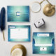 Estas cartas são perfeitas para qualquer casal planejando um casamento romântico pelo mar. O design apresenta um fundo de aquarela em tons azuis e verdes com uma estrutura decorativa de borda branca e é finalizado com um delicioso motivo de estrela. O design simples pode ser personalizado para se adequar ao seu evento especial e será a decoração de mesa perfeita para qualquer festa temática na praia, incluindo chás de panela, noivados, chás de casamento, festas de aniversário e muito, muito