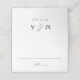 Cartões modernos de núpcias com roteiro de caligrafia em branco. A parte de trás dos cartões de lugar preto e branco apresenta suas iniciais de monograma com sua data de casamento mostrada abaixo. As elegantes cartas de roteiro são perfeitas para recepções de casamento modernas, jantas de ensaio e outros eventos especiais.
