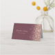 Este elegante e moderno cartão de lugar reservado para mesa de casamento apresenta um design brilhante de falso ouro rosa ao longo de uma borda num fundo escuro de burlu. A frente do cartão fornece espaço para o nome do convidado e o número da tabela na forma de retângulos rosa. A palavra "mesa" aparece em um script de escrita manual de cor rosa com alternâncias antes e depois. Personalize a parte de trás da carta com os nomes da noiva e noiva em um roteiro de escrita manual do rosa e a data de casamento abaixo em fontes sans serif.