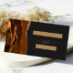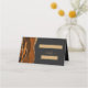Este elegante cartão de lugar reservado para mesa de casamento moderno apresenta uma borda de cor laranja queimada, aparada com brilho dourado. A frente do cartão fornece espaço para o nome do convidado e o número da tabela na forma de retângulos dourados num fundo preto escuro. A palavra "mesa" aparece num guião dourado com manuscrito com inchaço antes e depois. Personalize a parte de trás do cartão com os nomes da noiva e do noivo em um guião de escrita dourada e a data de casamento abaixo em sans serif font.