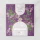 Cartão De Mesa Casamento Dourado de Arca com Verde Floral Roxo