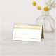 Esta placa Elegante Dourada e White Recepção de casamento Place foi projetada com sotaques dourados em um fundo branco. O verso desta placa dobrável é um fundo dourado que corresponde ao trim frontal. Uma linha colorida dourada é fornecida em ambos os lados para inserir o nome do convidado.
