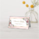 Cartão de mesa de casamento floral, cor-de-rosa-pincelado e dourado, ou cartão de lugar com flores rosa-pinceladas e verde armando o nome do convidado e o número da tabela dentro a uma estrutura dourada. Itens correspondentes disponíveis.