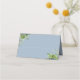 Este cartão de lugar para casamento floral de folhagens de eucalipto elegante pode ser personalizado com seus nomes e data especial no verso em um fundo azul empoeirado. Criado por Thisisnotme©