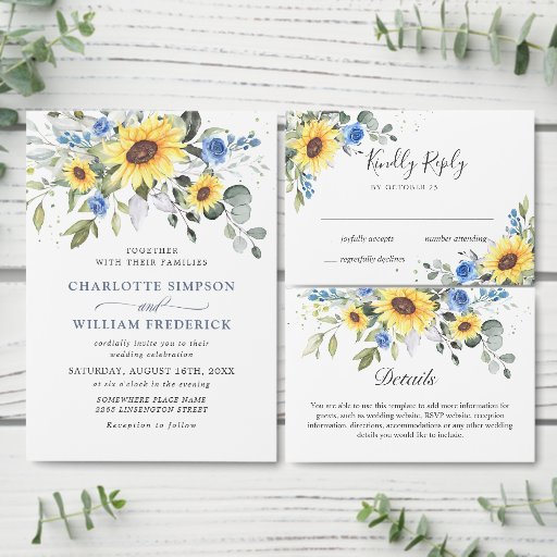 Blue Flowers, Sunflowers Eucalyptus Wedding SetCriado por Ellen L