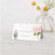 Cartão de lugar de casamento floral elegante com protea rei colorida e exótica baseada em rosa (também conhecida como sugarbushes). As flores foram pintadas à mão com aquarela. Arte e design originais do Namibear Art Studio. ©namibear