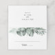 Este cartão de casamento floral verde tropical é perfeito para um casamento rústico. A design apresenta palmeiras verdes folhas buquês com flores brancas adoráveis. Personalize a parte de trás do cartão de lugar com os nomes da noiva e do noivo e a data.