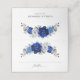 O Elegante cartão de casamento do tema prata azul real, branco, com elegante buquê de azul real, Marinho, prata, cor branca pura, botões de flores de rosa e folhas verdes de eucalipto. Entre em contato comigo para obter ajuda sobre a personalização ou se você precisar de outro produto com este design.