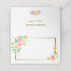 Estes cartões de casamento bonito apresentam um buquê colorido de cor d'água de rosa, pêssego e rosas amarelas claras com verde no topo esquerdo. Uma imagem menor coordenadora está no canto inferior direito. Ambas as imagens são colocadas sobre um quadro brilhante de ouro. A parte traseira da placa tem uma imagem do bouquet rosa correspondente menor com seu texto personalizado em ouro escuro no centro. Tudo é colocado sobre um fundo branco elegante. Apropriado e atordoante para casamentos ou outras ocasiões formais em qualquer estação! Certifique-se de ver os produtos de casamento correspondentes na nossa loja.