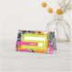 Forma retangular amarela neon sobre cor de laranja rosa e cor de pêssego floral moderno com design marmorizado escuro. Texto de "mesa" em néon amarelo sobre bar rosa quente.