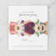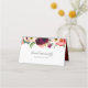 Flor rústica colorida em burgundy, pêssego, rosa e esbranquiçada na borda superior deste lindo cartão de lugar dobrado. As flores incluem peônias, rosas e anêmonas com galerias verdes e flores silvestres. Foi adicionado texto opcional para acomodar uma recepção de casamento, banquetes e eventos que usam assentos numerados por mesa. Este texto opcional pode ser removido excluindo-o se você quiser usar esses cartões de lugar para entreter grupos menores.