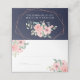 Marinho Blush Floral Watercolor Rosa de Cobre Dourado Casamento Geométrico. Cartão de casamento elegante com marfim branco, frente e marinho azul. Texto dourado antigo em branco com. Frente é marfim com espaço para nomes manuscritos e números de mesas e sotaques florais. A parte traseira apresenta texto branco no azul marinho da meia-noite adornado com uma única estrutura geométrica de cobre e uma impressão digital ajustada de um arranjo floral de cor d'água pintado manualmente em tons de rosa, coral, verde e cinza azul. Personalize com seu próprio texto. Convidamo-lo a visitar a nossa loja, Austen & Grace, para ver a suíte de casamento de cheios, produtos correspondentes e muito mais. Entre em contato conosco se precisar de assistência.