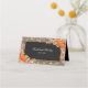 Cartões de cerimônias de colheita russa, com fundo chic country, peça central preta, corda, abóboras de halloween, folhagem de outono, bolotas, um espalhamento de folhas de outono, luzes cintilantes de cordas e um modelo personalizado de cartão de lugar de casamento que é fácil de personalizar.