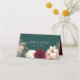 Cartão de lugar de casamento elegante com flores boho românticas em burgundy, marfim e pêssego suave contra um fundo verde esmeralda rico. Perfeito para casamentos de outono, temas florestais ou recepções boêmias elegantes. Totalmente editável e personalizável com seus nomes e data. Precisa de ajuda? Email bpkolman@gmail.com