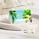 Cartão De Mesa Casamento Tropical de Palmeiras do Oceano Azul