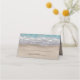 Design apresenta uma elegante cena de praia com corações na areia (nas costas) em que você pode "desenhar" as iniciais de sua escolha.