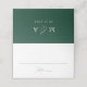 Cartões modernos de núpcias com um roteiro de caligrafia verde-escuro em fundo branco. A parte de trás dos cartões de lugar de script verde apresenta as iniciais do seu monograma mostradas em letras brancas com a data do seu casamento mostrada abaixo em um plano de fundo verde. As elegantes cartas de roteiro são perfeitas para recepções de casamento modernas, jantas de ensaio e outros eventos especiais.