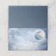 Cartão dobrado com um céu de fantasia mágico com nuvens azuis e uma lua grande e bela. 2 cisnes brancas voando juntas.