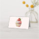Coloque a placa com uma ilustração brilhante com um cupcake delicioso. Sorvete branco e um morango grande adoram este doce doce doce.