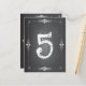 Números de tabela Whimsical no popular estilo chalkboard. Um número encantador em uma fonte escrita à mão é rodeado por rolagens roxas em um efeito giz.
