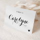 Eleve a sua recepção de casamento com nossos belos cartões de lugar de casamento personalizáveis, projetados para adicionar um toque pessoal ao seu dia especial. Eles apresentam caligrafia preta moderna e um acento de coração. Adicione os nomes dos seus convidados, a opção de refeição, a data do casamento ou uma mensagem especial. Transforme as mesas da sua recepção em uma exibição deslumbrante de personalização e amor com nossos cartões de lugar modernos. Perfeitos para casamentos, chá de bebê, chá de noiva, aniversários e muito mais.