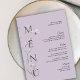 Este simples cardápio de mesa botânica de design com aquarela tem uma tipografia elegante para criar um humor elegante e simples. Fácil de personalizar para o seu casamento moderno sobre temas cor-de-rosa.