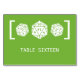 Esta Carta de Números da Mesa do Jogador de Dice D20, em verde, é perfeita para o casal nerd que se apaixonou por um interesse compartilhado em jogar jogos no topo da mesa e está planejando um casamento temático semelhante. Esta design ofuscada apresenta uma trio simples e minimalista de vinte lados. Fácil de personalizar, basta adicionar os detalhes do seu casamento nos campos de texto fornecidos. Clique em "Personalizar" para encontrar mais opções de personalização.
