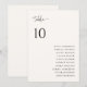 Cartão de número da tabela de assentos de casamento, minimalista de chic contemporâneo. Características, tipografia negra com fundo colorido de cor bege claro.