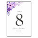 Cartão de mesa de casamento com temática púrpura para a sua recepção de casamento com tema floral