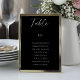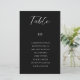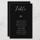 Cartão de número de mesa de casamento preto e branco com gráfico de assentos de nomes de convidados
