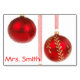 Cartão de mesa de Natal com decorações vermelhas e ouros e texto personalizável.