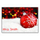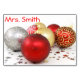 Cartão de mesa de Natal com decorações vermelhas, prateadas e ouros e texto personalizável.
