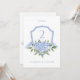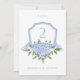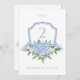 Esta bela design apresenta flores azuis de hydrangea e uma crista de casamento de aquarela. Use o formulário modelo para adicionar suas informações. Desmarque a opção de envelopes.