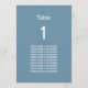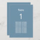 Cartão de Mesa de Nomes de Convidado Azul Moderno, fácil de personalizar no modelo de personalização online para mostrar o número da tabela para a mesa apropriada e os nomes de convidado para essa mesa. O design copia automaticamente para o outro lado da placa de forma a ajudar os convidados a encontrar a mesa de ambos os lados da mesa. Com um layout simples e moderado de design minimalista, esta placa de mesa na moda incorpora espaço ao redor dos elementos de texto para permitir a escolha de métodos de exibição, como travar ou enquadrar a placa.