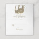Cartão de casamento branco simples, elegante e minimalista, combinado com elefante monograma de folha de ouro - símbolo de amor, fertilidade e boa sorte. Na moda, rico, único, para noiva de gosto moderno e sofisticado.