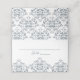 Um elegante modelo design de damasco de caligrafia azul, com espaço para nome e número da mesa. Uma simples design formal com um aspecto e uma cor modernos.