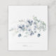 O cartão de lugar moderno apresenta uma cor d'água, flores silvestres azuis empoeiradas e eucalipto verde. Coordenadas com a suíte de casamento de flor selvagem azul empoeirada.
