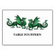Perfeito para um sofisticado jogo de mesa de fantasia O casamento temático é este nerd e único cartão de número da mesa de casamento Elegante com um par de dragões verdes vibrantemente coloridos. Fácil de personalizar, basta adicionar o(s) número(s) de tabela apropriado(s) no campo de texto fornecido. Clique em "Personalizar" para encontrar opções adicionais de personalização.