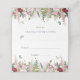 Lindo, alegre e elegante, este cartão de mesa dobrado para o dia do casamento apresenta um adorável design de flores rosa e roxas com borboletas e abelhas voando ao redor.