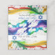 Lacre de cartão com respingos de tinta com visual 3D neon legal e cores vibrantes de verde, roxo, vermelho, azul, laranja, amarelo. Estrela de Davi azul.