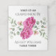 Esta sofisticada carta de escolta de casamento mostra um belo arranjo de um galho de eucalipto adornado com delicadas flores rosas cor-de-rosa e folhagem verde macia no topo. Os nomes estão inscritos elegantemente numa fonte decorativa de na moda, adicionando um toque de charme ao design geral.