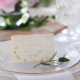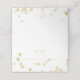 Cartões elegantes em ouro branco e falso, com confete espalhado pelo fundo.