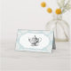 Celebre uma pessoa especial ou um casal com uma tradicional festa de chá high tea britânica. O fundo do cartão de lugar é uma imagem de papel azul vintage com padrão de rosetas brancas. A moldura com um centro de papel branco vintage apresenta uma ilustração vintage de um bule de chá ornamentado. Adicione o(s) nome(s) do(s) seu(s) convidado(s) e o número da mesa ou assento. Versátil para usar em suas mesas para um chá de panela de noiva ou casal, chá de bebê, festa de aniversário, brunch de casamento ou um almoço especial. Disponível em cores alternativas com produtos correspondentes.