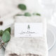 O design do cartão de ponto chic do Wintry oferece espaço para seu nome de convidado e número da tabela, seguido de uma ilustração do pínus de cor d'água do solteiro em verde-cinza sem som e pontilhado com estrelas do ouro.