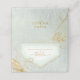 Um fundo de aquarela em tons de verde sábio é tocado por um abstrato de linhas de ouro finas e efeitos de iluminação reluzentes para criar as peças desta bela suíte de casamento. O cartão de lugar da mesa de casamento mostrado aqui também apresenta um belo quadro de gradiente na frente para segurar nomes de hóspedes e números de mesas. Adicione facilmente os seus próprios nomes e a data do casamento no verso usando a modelo fornecida. Procure ID867 para ver outras peças e opções de cores para este conjunto.