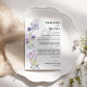Este adorável cartão de recepção de obrigado de flor silvestre púrpura apresenta caligrafia aquática de flores silvestres e é ideal para um casamento moderno. A maravilhosa design romântica e minimalista tipografia negra sobre fundo branco tem uma aparência básica e limpa. Coloque essas placas em cada mesa à medida que seus convidados chegam para a recepção de casamento.