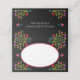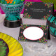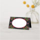 Cartões de mesa personalizados com design Fiesta mexicano em preto com quadro branco para escrever o nome do convidado. Este design floral colorido é repetido no verso, onde você pode personalizar com seu nome e data do evento. Procure na coleção itens correspondentes e coordenadores ou me envie uma mensagem para criar quaisquer modelos adicionais de que você precise.