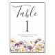 Cartão de mesa floral de flor silvestre púrpura. Fácil de mudar o texto. Bonito floral de aquarela.