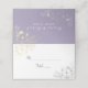 Vintage, elegante, moderno boho cartão de lugar de casamento lavanda roxo, com renda floral falsa prateada e dourada e caligrafia moderna.