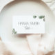 Esses cartões de lugar são uma bela decoração para o seu chá de bebê com folhas de eucalipto pintadas à mão à aquarela.